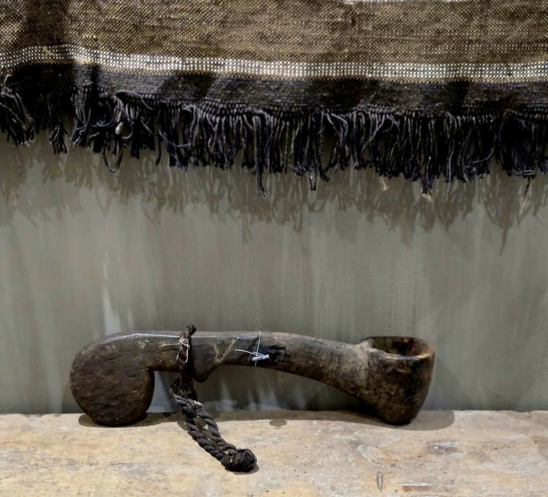 Oude Nepalse lepel Hoffz met grof touw leuk om weg te zetten maar ook om er een paar tegen de muur te hangen is super leuk
