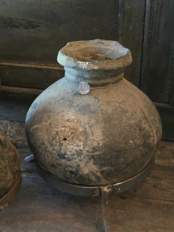 Prachtig oud stenen kruikje op statief rechter
