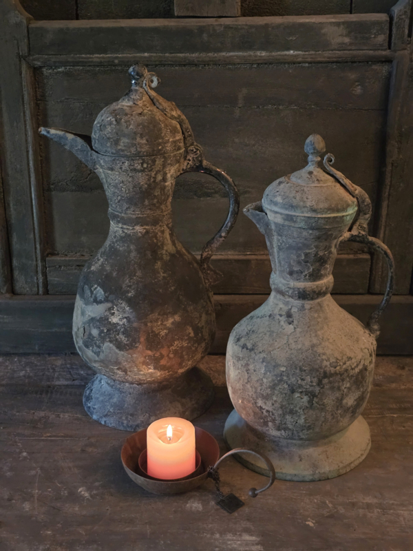 Oude Koperen Kan met Deksel Uniek Exemplaar LinksPrachtige Oude Koperen Kan met Deksel Links