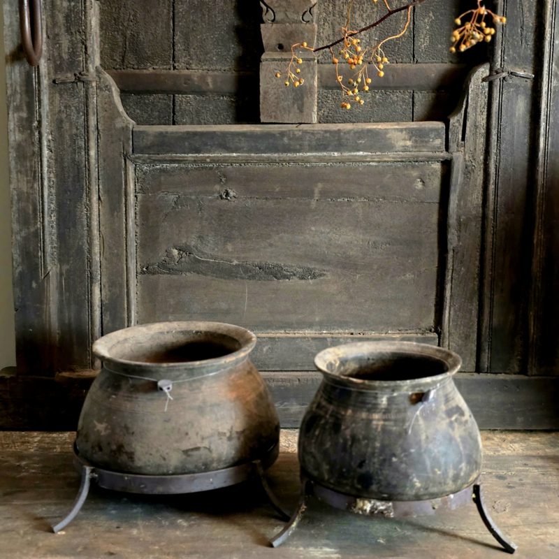 Oud Stenen Kruik op Statief Hoffz rechtsOud stenen kruik op statief rechts